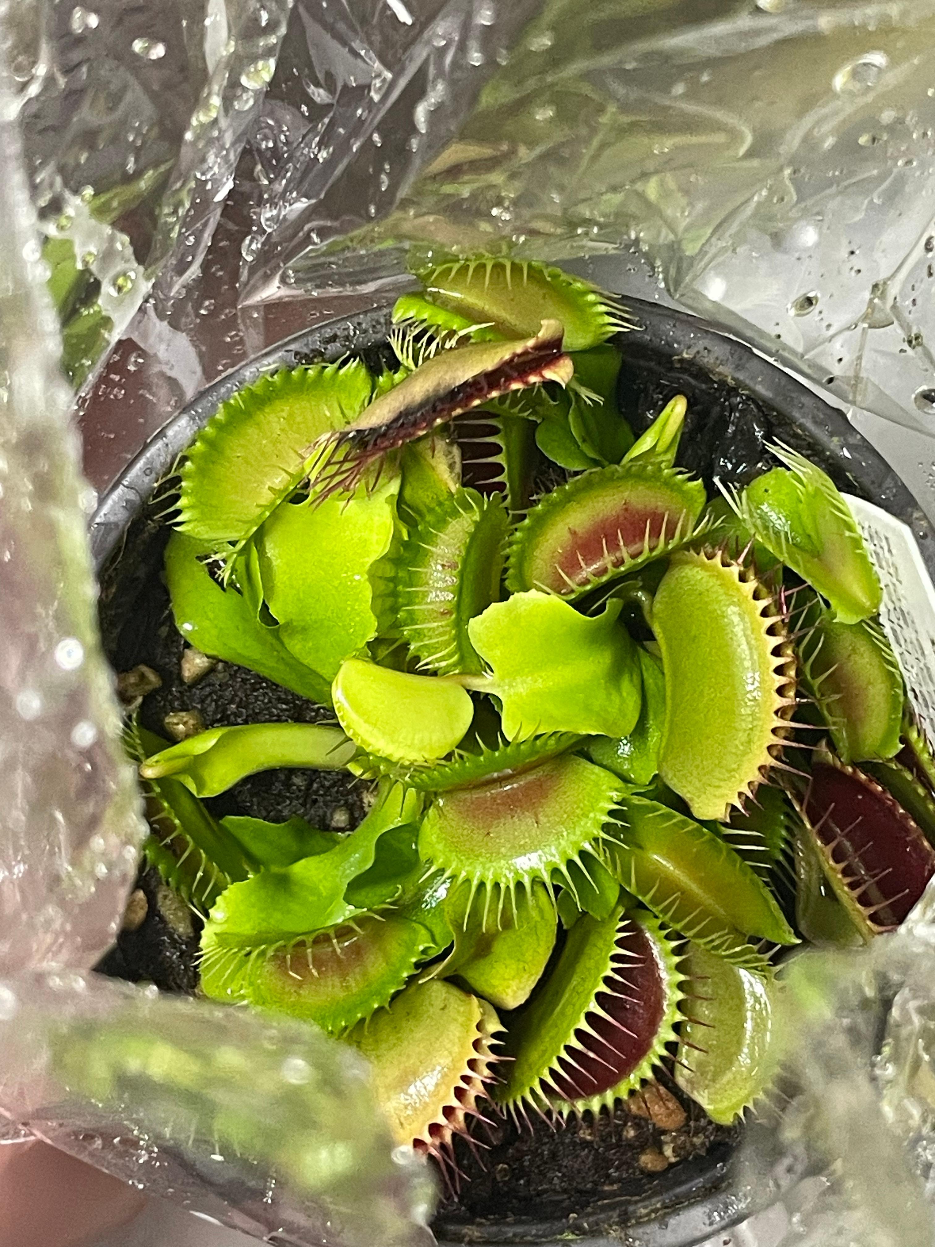 처음 구매했을 때 이렇게 트랩 안까지 빨간색으로 아주 싱싱하게 잘 왔습니다. 물은 제가 뿌려준 것. 파리지옥의 특징이 습한 곳이다 보니 물을 자주 줘야 합니다. 그렇다고 너무 자주 주면 또 안 되는 거 다들 아시죠? 습함을 유지하는 것이 좋습니다.